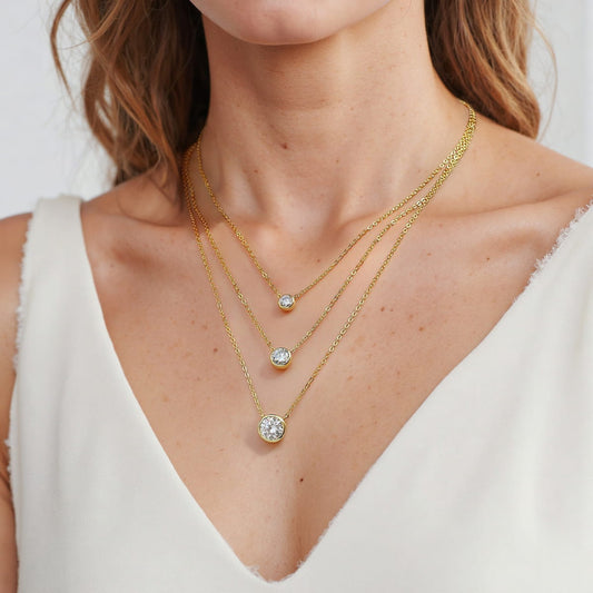 Theiaura Triple Layered Bezel Moissanite Necklace