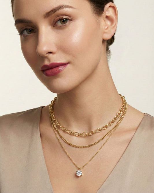 Theiaura Round Moissanite and Mixed Chain Necklace Set